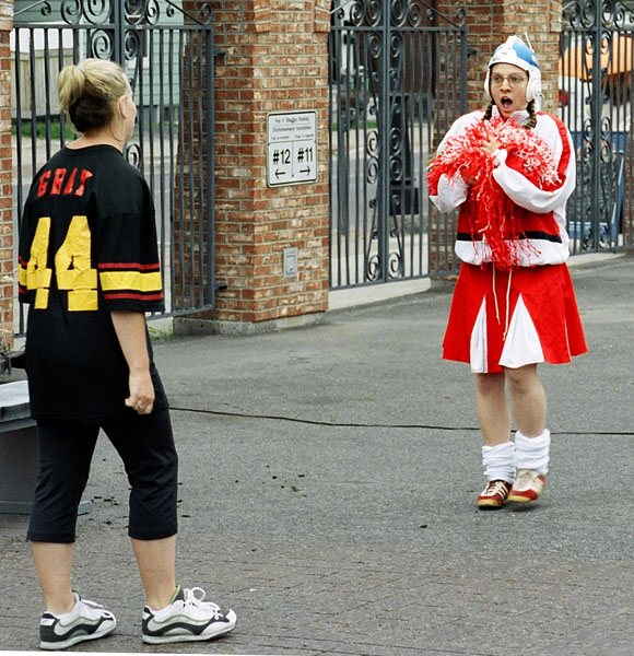 The Alien Mind-Control Future Laser ← Previous Next → Kate Chapman and Zita Nyarady in “The Alien Mind-Control Future Laser” 2005 Street Theatre by Jill Connell